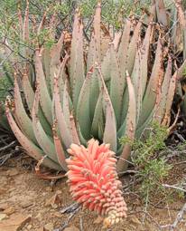 Aloe claviflora is one of the easiest succulent plants to identify in the arid regions of the wild either by its angled inflorescence that protrudes horizontally from the side of the plant or by the circular arrangement in which the plants grow, resembling a camp fire.