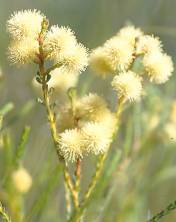 Berzelia lanuginosa is an evergreen shrub that grows up to 2 m high. It has slender branches and a spreading or upright habit. The small, narrow leaves are closely arranged in whorls up the stem. The flowers are usually clustered in terminal heads on short branches. The flower colour is creamy white to yellow, and flowers from June to November. After flowering, it has attractive, creamy white seeds which stay on the shrub for at least one to two years.