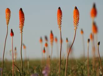 Bulbinella latifolia subsp. doleritica was not listed on the 1997 Red List by Craig Hilton Taylor. In the new Red List of South African plants (Raimondo et al. 2009) this subspecies is listed as Vulnerable. It is only known from seven locations restricted to the self-mulching, spongy doleritic soil near Nieuwoudtville. About 12% of this habitat was lost to agriculture in the past. Current declines in populations remain unknown but it is suspected that they are very sensitive to grazing impact and climate fluctuations. SANBI and Indigo Development and Change staff are currently conducting demographic monitoring on selected populations to investigate the impact of these threats on the populations.