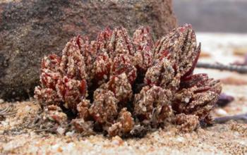 This species is unique amongst crassulas in that it possesses the curious ability to allow sand grains to adhere to the back of its leaf surfaces, resulting in the plant being coated in a layer of silica armour. This, presumably, not only makes the plant less palatable to predators, it also affords some degree of camouflage and acts as a sunscreen for the plant during the baking-hot and dry Mediterranean-type summers.