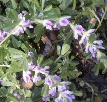 This is a mat-forming and low-growing, trailing, ground cover with masses of mauve-pink, pea-like flowers in spring.