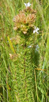 Roella glomerata is a summer flowering, erect, branched shrublet, up to 600 mm tall. Leaves are numerous, linear-lanceolate, stiff, bristly, often with an axillary cluster of smaller leaves.